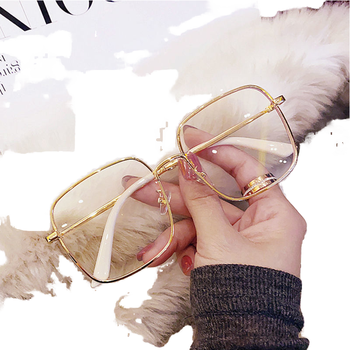 Mavi ışık engelleme erkekler kadınlar Metal optik gözlük büyük çerçeveler şeffaf Lens ins bej öğrenci kare moda yüksek kaliteli